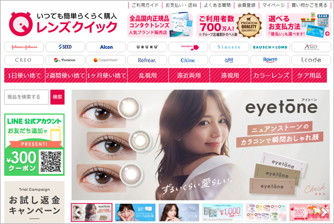 レンズクイックは、日本語・日本国内の通販として安心して使えるコンタクトレンズ通販サイトです。